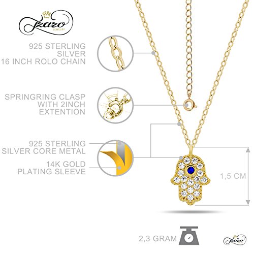 -. Title : 925 Sterling Silver Small Hamsa Necklace 14K Gold Plated Hand of Fatima Necklace, Silver Hamsa Hand Necklace Hamsa Pendant Luck Necklace Evil Eye Protection Necklace 16inch Chain + 2" Ext w Clasp