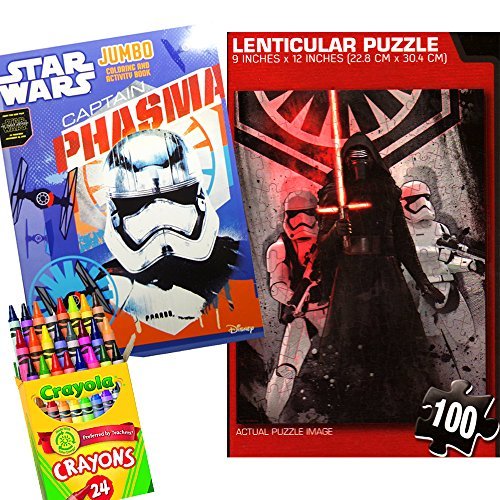 -. Binding : Toy -. Brand : Star Wars -. EAN : 0751778439904 -. Feature : Delight your Star Wars fan with Star Wars Episode 7 The Force Awakens 3 in 1 set. Including One Coloring and Activity Book, One Lenticular Puzzle and 24 Crayola Crayons / Star Wars Coloring and Activity Book: Book measure approximately 8" x 10.75" and have about 96 pages . / Star Wars Lenticular Puzzle: 100 Piece Puzzle. Featuring Kylo Ren and Storm-troopers characters. Jigsaw Puzzle. Completed size puzzle is 9" x 12" / 24 Crayola Crayons in a box: The 24 non-toxic crayons in this pack feature classic colors, as well as bright, fun shades that help inspire self-expression and imaginative play. / Great gift for your favorite Star Wars enthusiast! This coloring and activity book and puzzle set will provide many hours of learning and fun! -. IsAdultProduct : 0 -. Label : Star Wars -. Manufacturer : Star Wars -. PackageQuantity : 3 -. ProductGroup : Toy -. ProductTypeName : TOYS_AND_GAMES -. Publisher : Star Wars -. Studio : Star Wars -. Title : Star Wars Episode 7 The Force Awakens 3 in 1 Set - Including Coloring and Activity Book + Lenticular Puzzle Game + 24 Crayola Crayons -. UPC : 751778439904