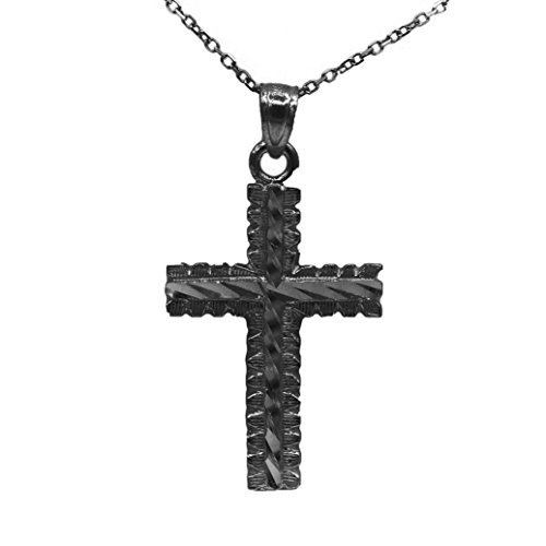 -. Title : 14k Black Rhodium Gold Cross Pendant Necklace
