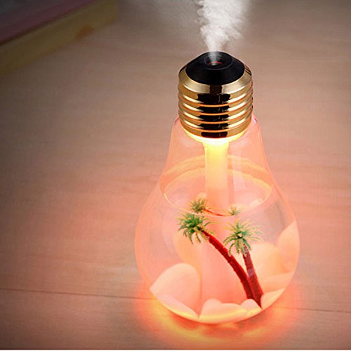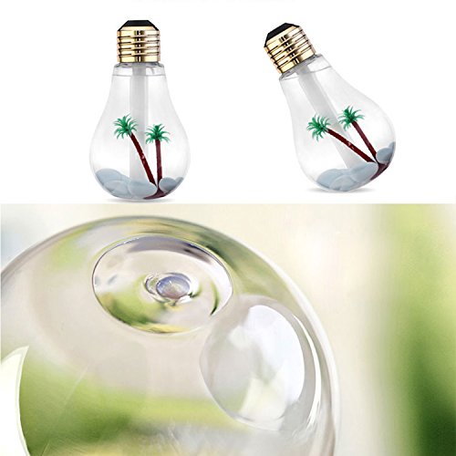 ▼ Unique Design: bulb-shaped humidifier; tropical landscape ; smiling face switch; multi-angle display(can be placed upright or sideways)