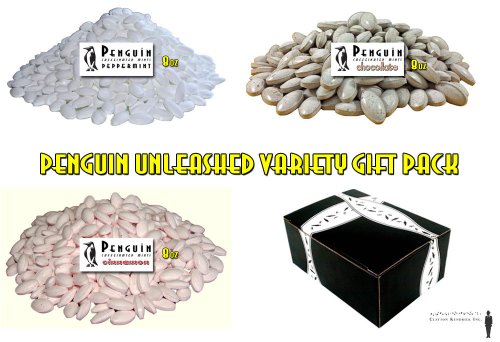 -. Title : Penguin Caffeinated Mints 3-Flavor Variety: One 8 oz Bag Each of Peppermint, Chocolate, and Cinnamon in a Gift Box