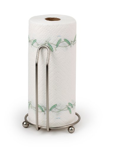 The Pantry Works Deluxe Paper Towel Holder from Spectrum is a great way to store and display your paper towels. The wide sturdy base keeps paper towels off the counter and prevents the unit from tipping while in use. Made of sturdy steel, its clean and classic design will add a contemporary touch to your home. Measures 7"L x 6.25"W x 11"H.