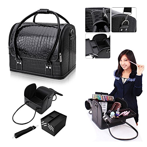 Hotrose Professional Beauty Make Up Case Nail Cosmetic Box Vanity Case (Black)