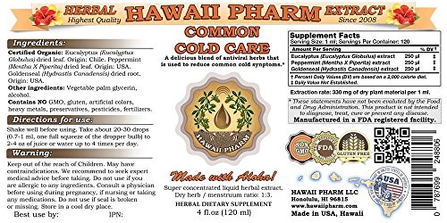Studio : Hawaii Pharm LLC Publisher : Hawaii Pharm LLC Binding : Health and Beauty Product Description The eucalyptus (Eucalyptus globulus) is an evergreen tree native to Australia but naturalized to California and the Mediterranean countries. Its leathery blue-green leaves are studded with glands containing a fragrant, volatile oil. There are many species of eucalyptus trees, but the most pleasant-smelling oil is produced by Eucalyptus globulus. Peppermint also known as Mentha piperita, White Peppermint, American Peppermint, Northern Mint, Lamb Mint, Brandy Mint, and Black Peppermint. The essential oil of peppermint (up to 2.5% in the dried leaf) is mostly made up from menthol (ca. 50%), menthone (10 to 30%), menthyl esters (up to 10%) and several monoterpene derivatives (pulegone, piperitone, menthofurane). Traces of jasmone (0.1%) give the oil its characteristically ?minty? scent. The aromatic chemicals in the mint are concentrated when the plant is grown in areas with long, warm, bright summer days. Goldenseal (Orange-root, Orangeroot; Hydrastis canadensis) is a perennial herb in the buttercup family Ranunculaceae, native to southeastern Canada and the northeastern United States. 0