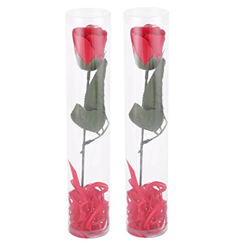 uxcell Anniversary Gift Artificial Rose Design Bathing Soap Petal Flower Bouquet 2pcs Red