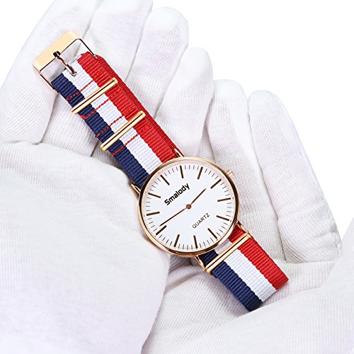 Smalody 손목시계 레이디스 초박형 나일론 벨트 쿼츠 아날로그 손목시계 시계 남녀 겸용 (레드)