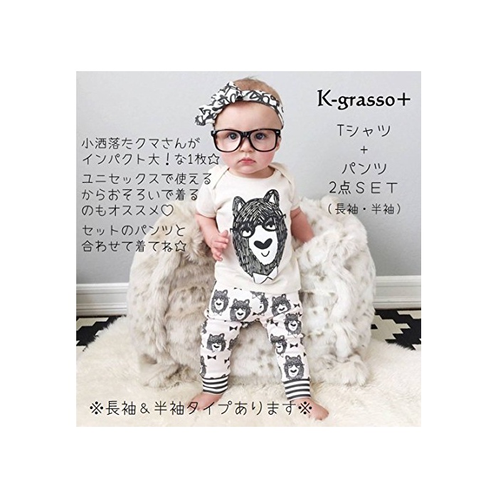 원본상품명: (ケイグラッソ) キッズ Tシャツ & パンツ 上下 2点セット クマ 長袖 半袖 ウエスト ゴム 仕? セットアップ 子供服 ベビ? パジャマ 普段着 ユニセックス 70 80 90 100 110