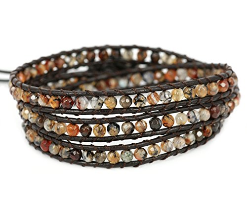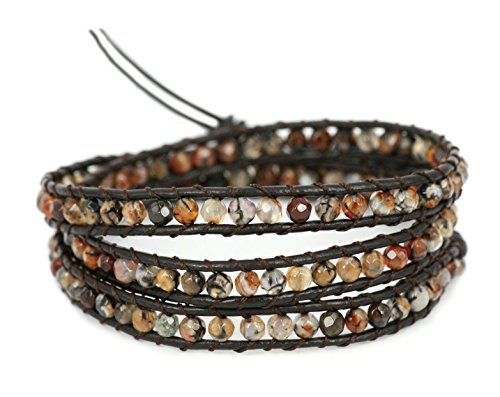 -. Title : BLUEYES COLLECTION "Desert Night" Faceted Cut Agate Bead Genuine Leather Bracelet, 3 Wraps, 4mm/bead