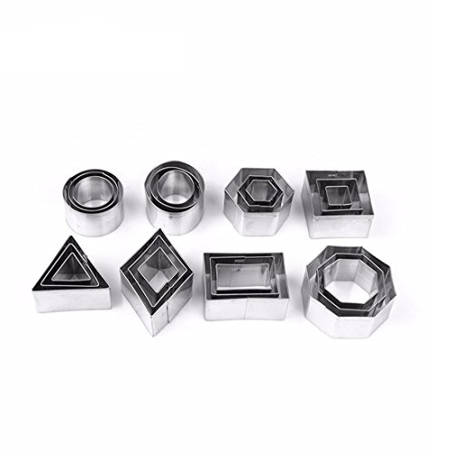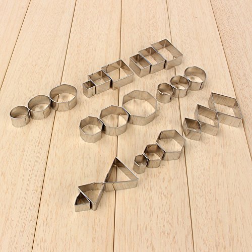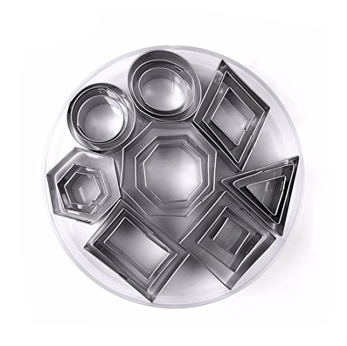 Yosoo 24pcs Geometric Shape Cookie Cutters Set - Stainless Steel Biscuit Chocolate Cutters Set Assorted Shapes Cake Mold, Durable 8 Different Shapes Comes In Container
