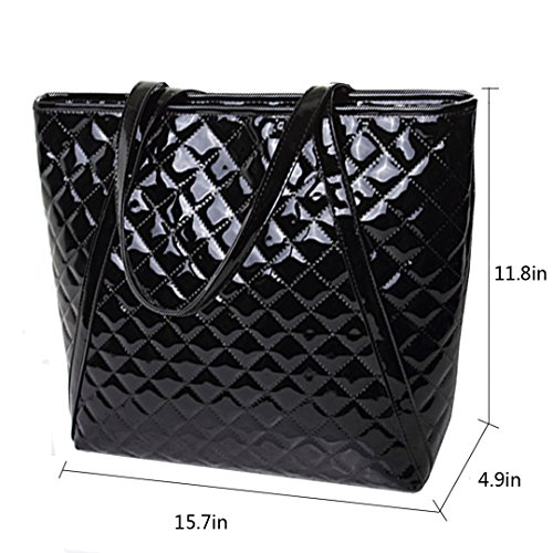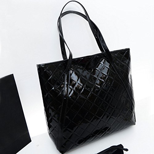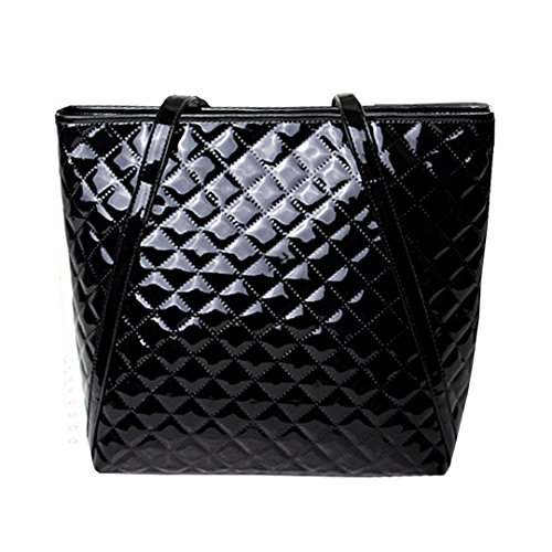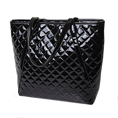 CLARA Women Basic Fashion Tote Bag Geometric Pattern Handbag Large Capacity Patent Leather Shoulder Bag