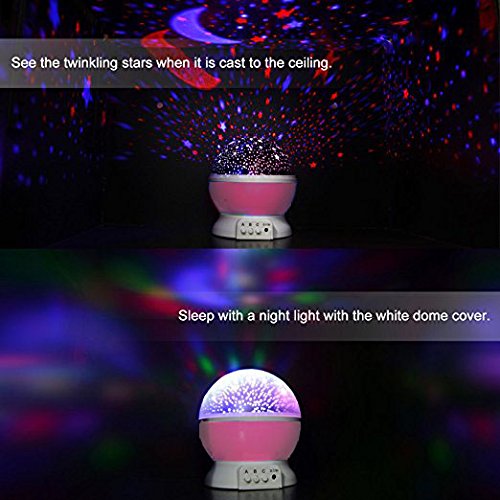- ❤【Star and Moon Night Light】 If your kid is afraid of dark, this star and moon projection lamp will be a perfect addition to a child's bedroom. It has a soft light so that you can sleep with it on and it won't bother you. The stars and moon night light can create different color combinations and it has an option to move around the room.