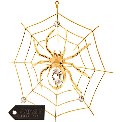- EYE-CATCHING DESIGN: A creepy,crawly spider spins a web on the porch of a dusty abandoned barn. Crafted with quality materials like 24K Gold and studded with precision cut Matashi® crystals.