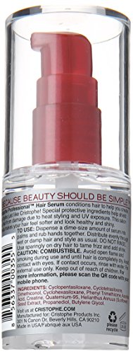 Cristophe Professional Extra Strength Hair Serum conditions hair to help you create silky smooth styles just like Cristophe. Special protective ingredients help shield your hair from damage due to heat styling and UV exposure. This salon formula makes your hair feel softer and look healthy and shiny.Feature