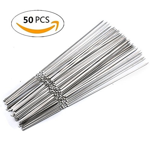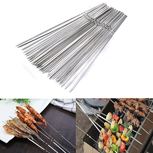 Someamy 14 INCH Barbecue Skewer Shish Kabob Set Unique Flat Blade Designed Stainless Steel Barbecue Skewer Perfect For Campfire, BBQ & Hot Dog Roasting