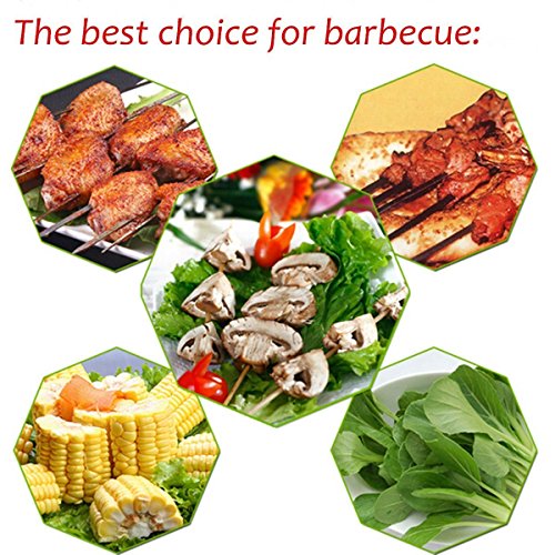 The skewers head is 15 degree easily skewer meat or vegetables Please keep the skewer stay away from Children