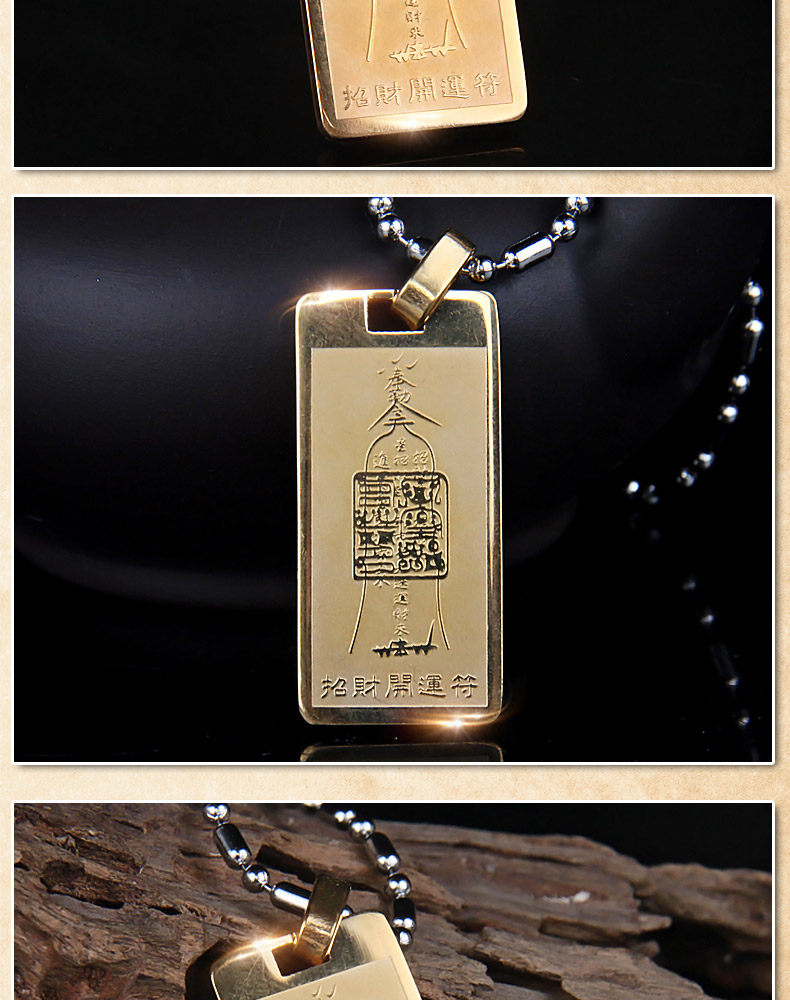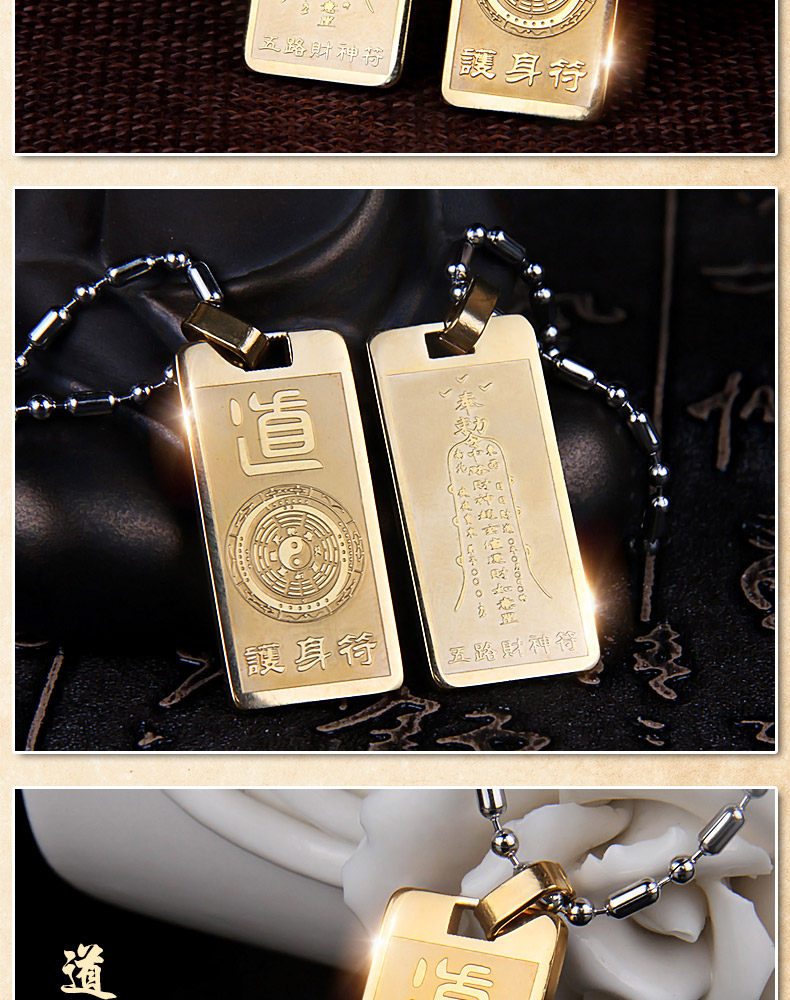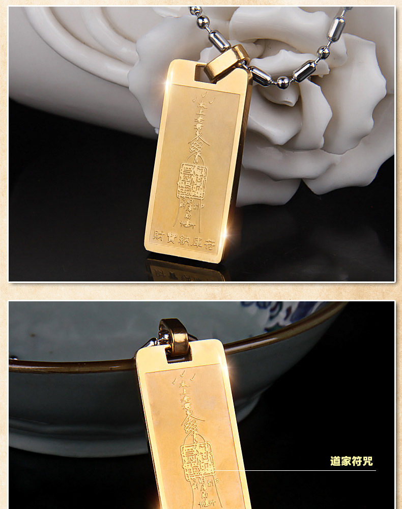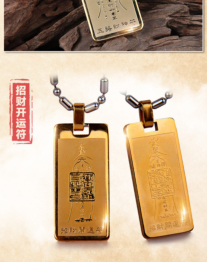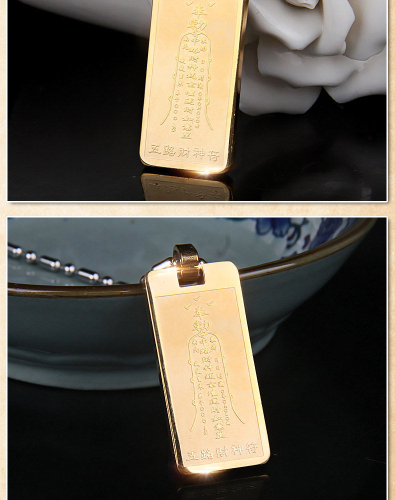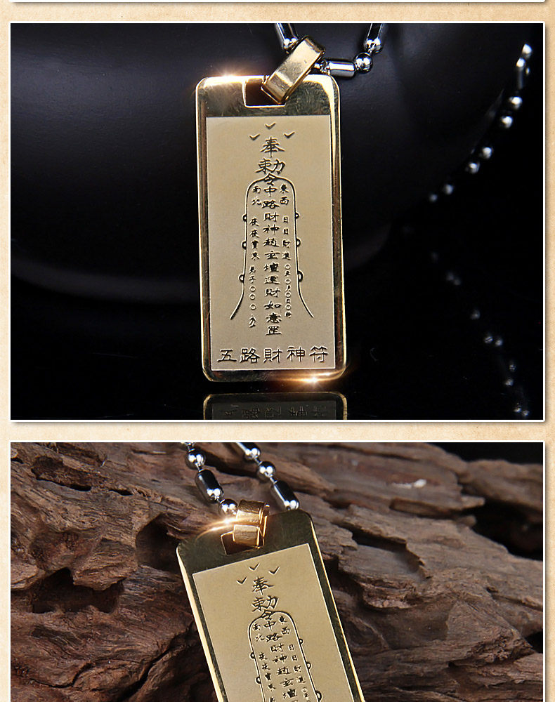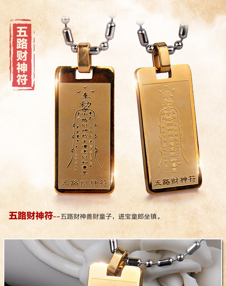 招财辟邪五路财神平安符开光钛钢镀金道教护身符吊坠