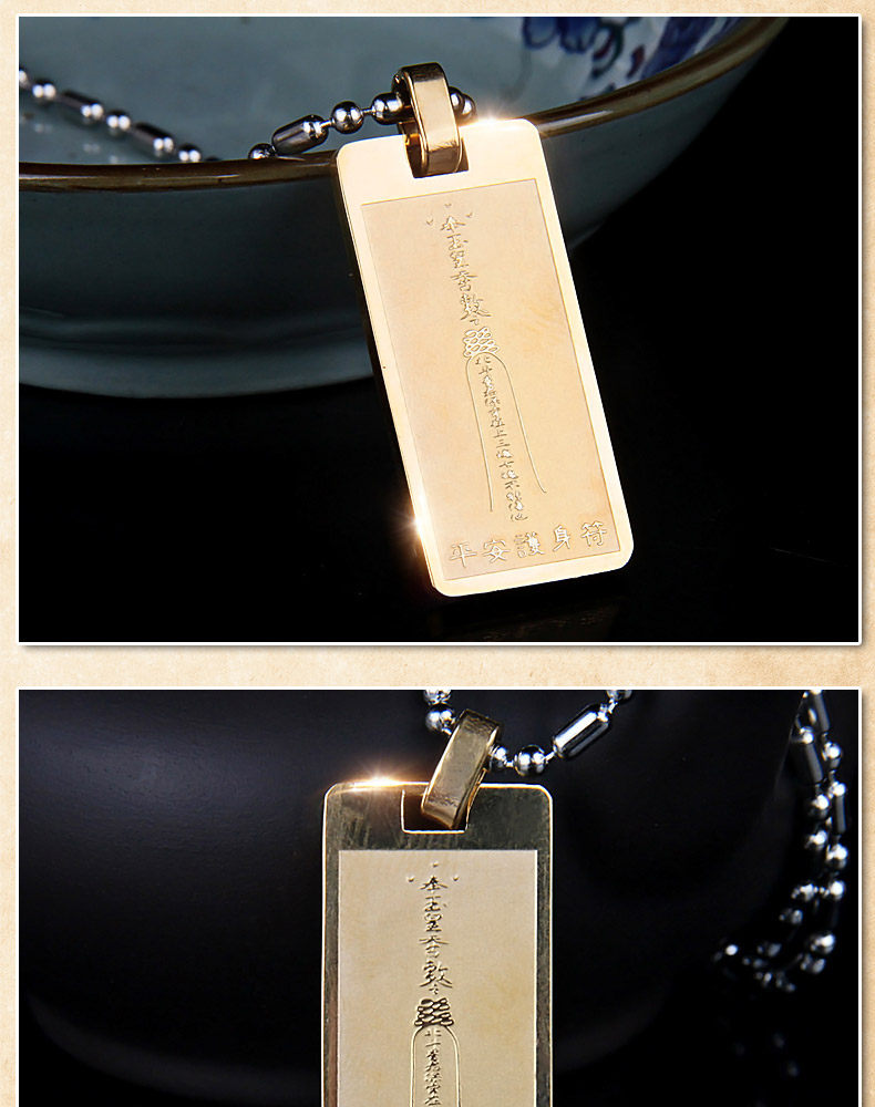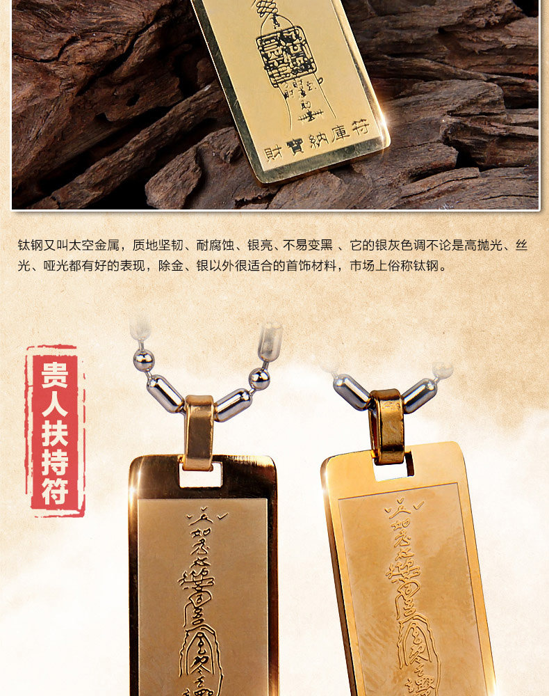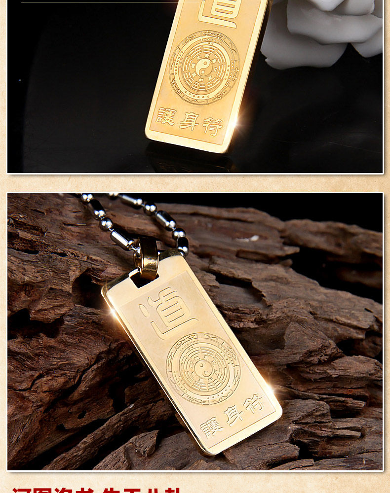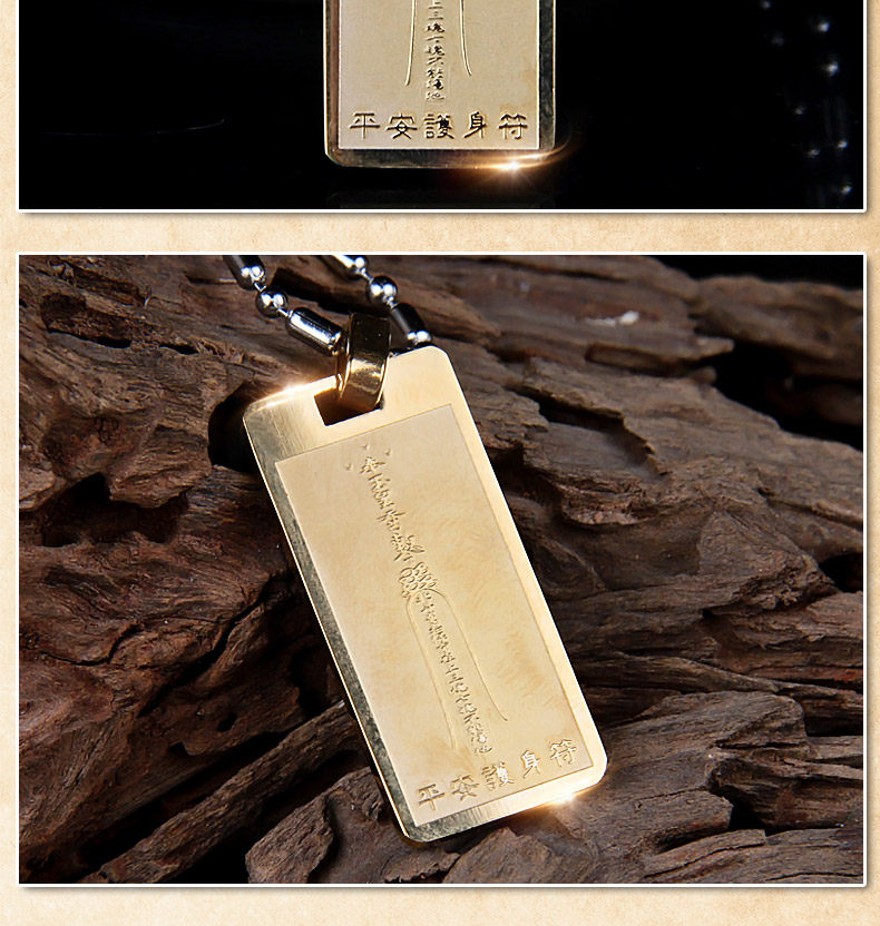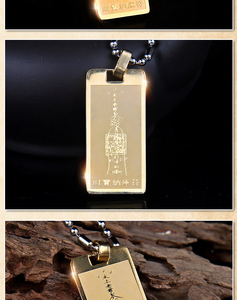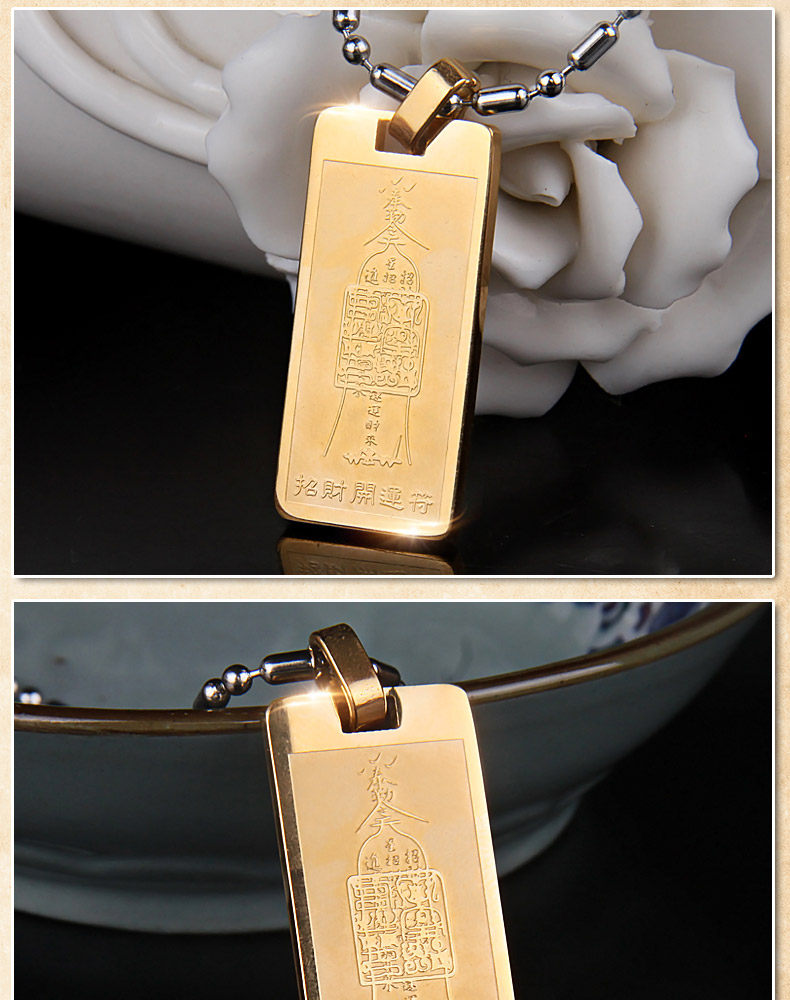 招财辟邪五路财神平安符开光钛钢镀金道教护身符吊坠