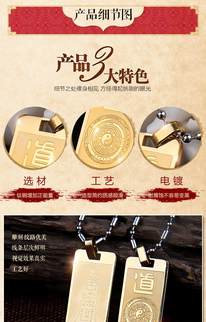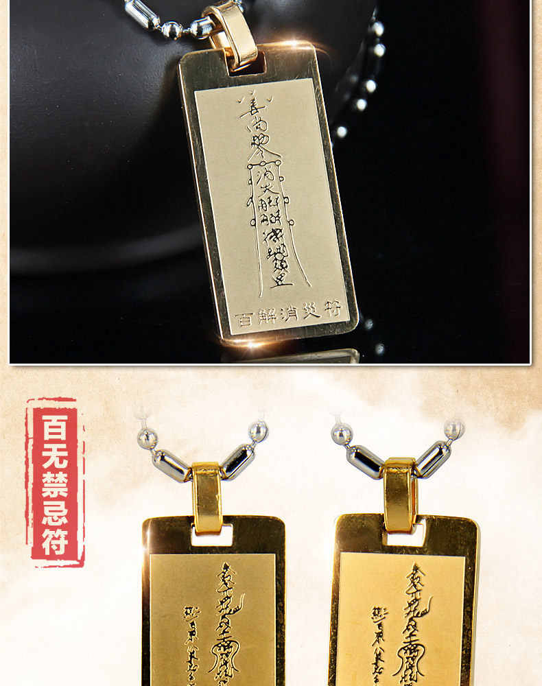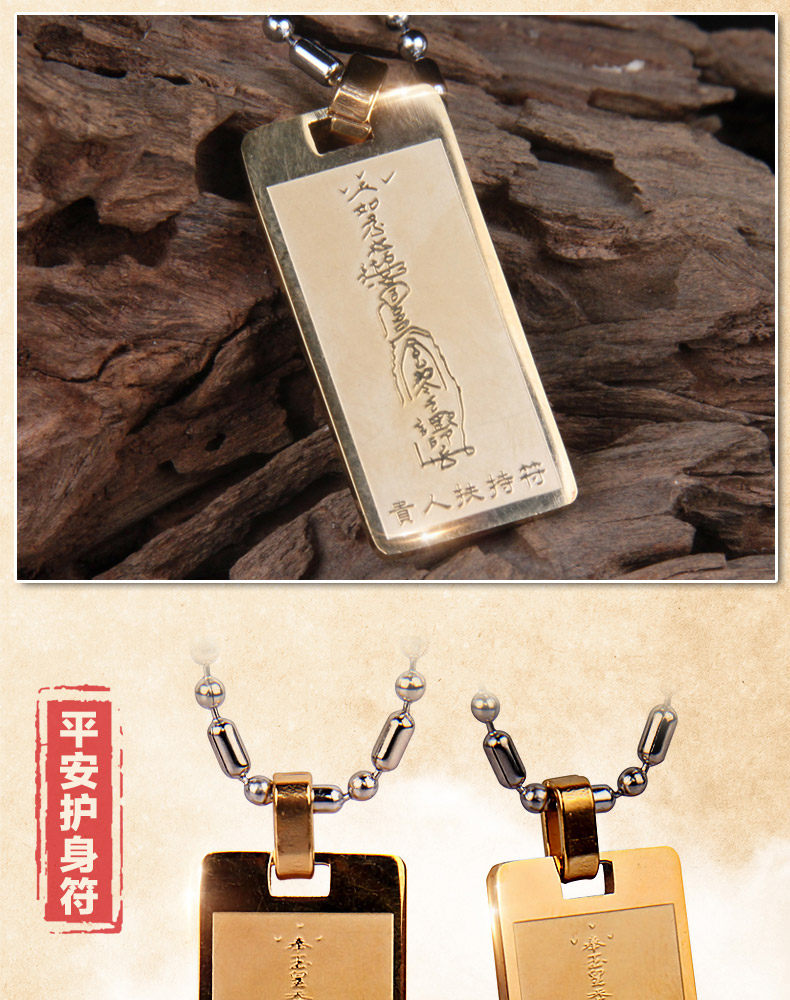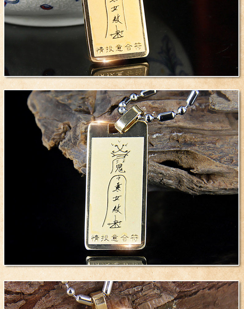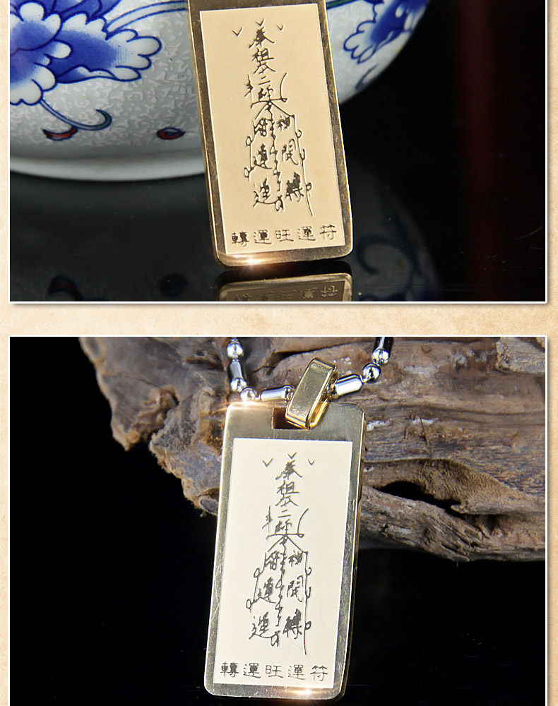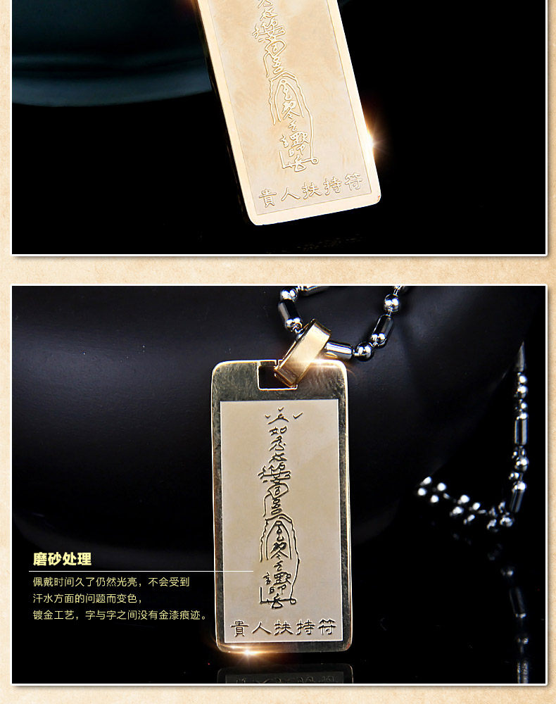 招财辟邪五路财神平安符开光钛钢镀金道教护身符吊坠
