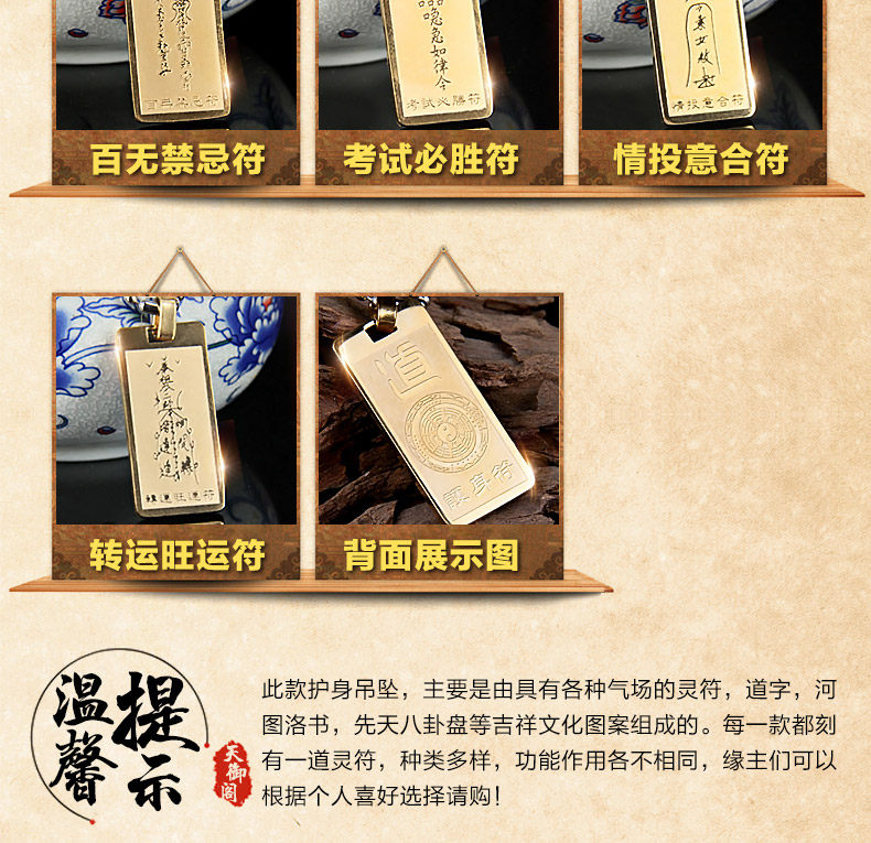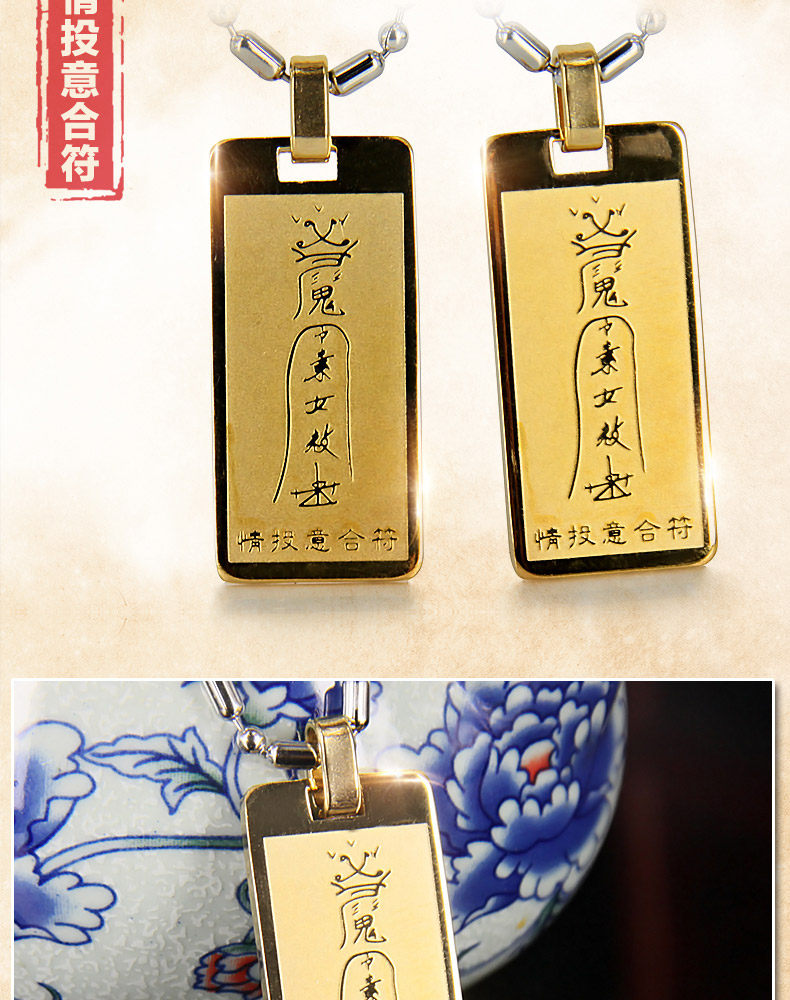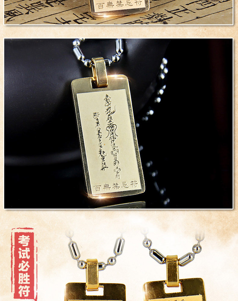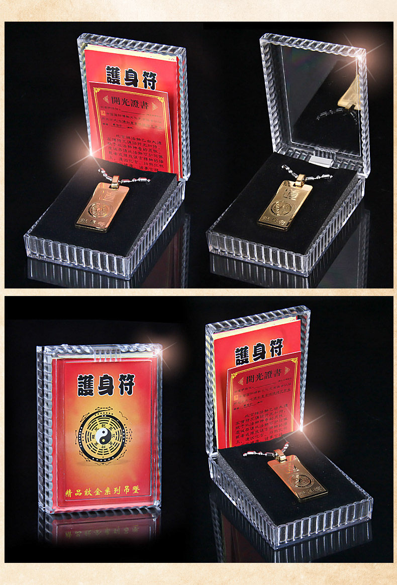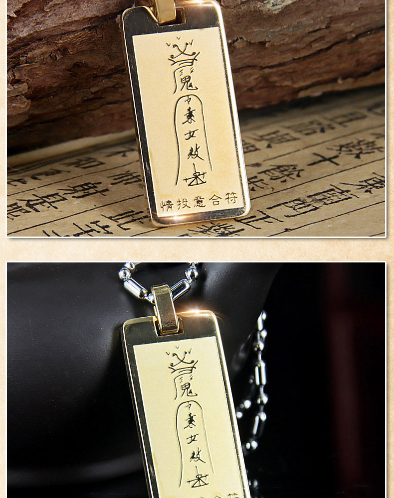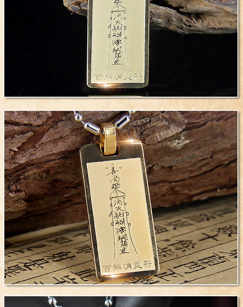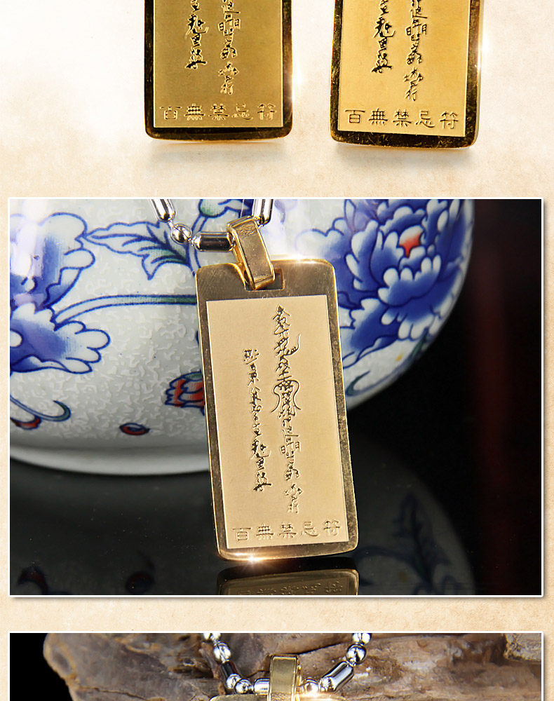 招财辟邪五路财神平安符开光钛钢镀金道教护身符吊坠