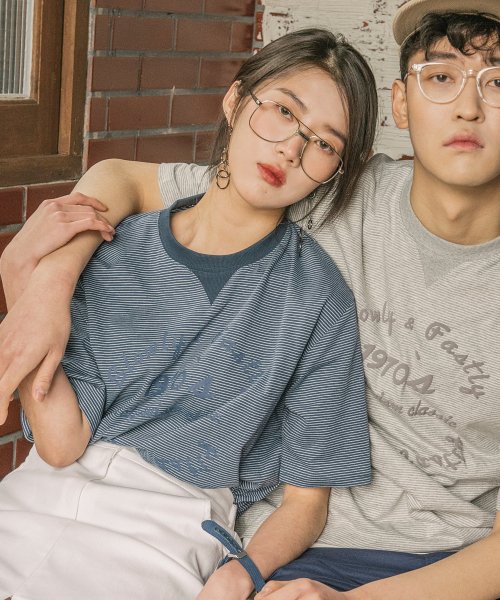 언클락와이즘(UNCLOCKWISM) Slowly&Fastly Stripe Short Sleeve T-shirt_Blue