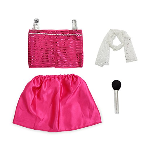 100% polyerter made with well sewing to ensure durability. Soft fabric, super comfortable to wear. 19Pcs included: 4 different tops, 5 different tutus, 1 fairy wings, wand, headband, veil, a pair of shoes, gloves, microphone. Tops feature velcro closure, easy to put on and take off. Adorable tutus with soft elastic waistband