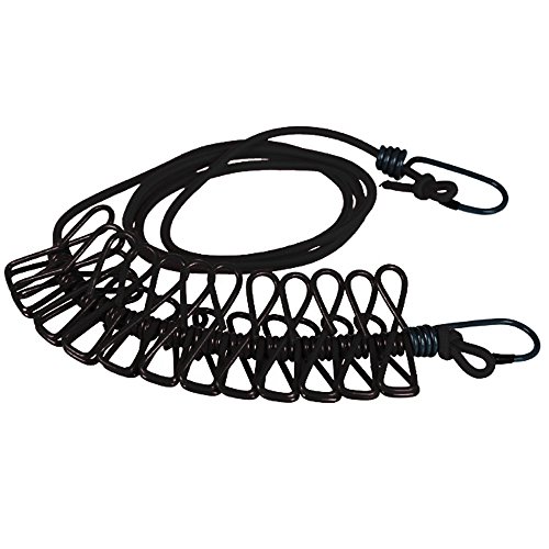 Handaes Travel Portable Economical Retractable Elastic Clothesline Windproof Stretch Drying Rack 12 Clips PP Clothesline (Black)