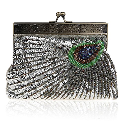 -. Title : Peacock Tail Handbag for Women Sequins Beaded Evening Bag Wedding Bridal Party Prom Clutch