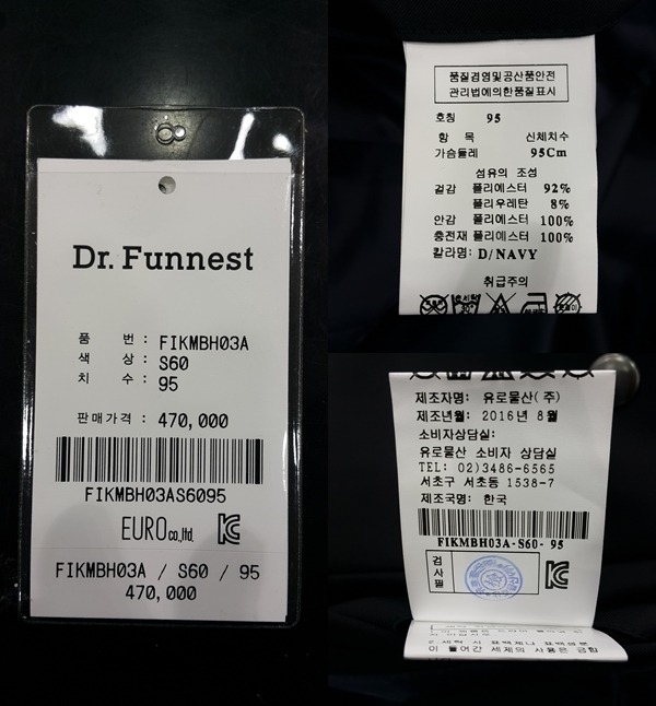 겉감 폴리에스터 92% 폴리우레탄 8% 안감,충전재 폴리에스터 100%