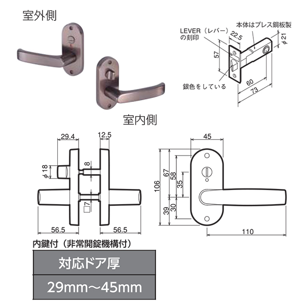 ●スペック:対応ドア厚29~45mm