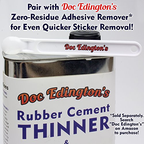 DOC EDINGTON'S COMPLETE LABEL & ADHESIVE REMOVER SYSTEM! Pair this scratch-free scotty label peeler with our Doc Edington's Zero-Residue Adhesive Remover to get stubborn stickers off of your items!