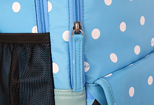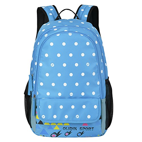 -. Brand : BLUBOON -. Feature : Size: 17*12*5.5 inch (L*H*W), Material: nylon / This backpack is waterproof, the straps are comfortable and well sewn / zippers are strong and non-slip, the material is easy to clean / There is pocket for laptop and tablet up to 14 inch keep your electronics safe / Front zipper pocket is very large and holds your pen pouch, pencils, cell phone, keys, purse, and cd player and others -. Label : BLUBOON -. Manufacturer : BLUBOON -. MPN : BLUBOON -. PackageQuantity : 1 -. PartNumber : BLUBOON -. ProductGroup : Sports -. ProductTypeName : OUTDOOR_RECREATION_PRODUCT -. Publisher : BLUBOON -. Studio : BLUBOON -. Title : BLUBOON Backpacks for Girls Bookbags Lightweight Casual Style Waterproof Polka Dot Boys Backpack