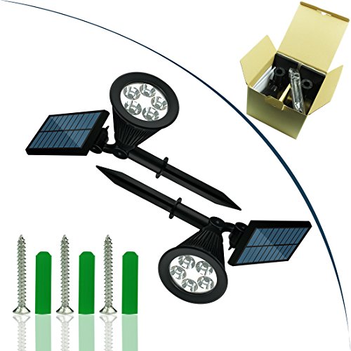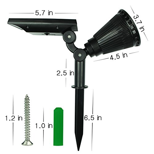 - 2 Installation Options: Can be stuck into the ground or use included screws to mount on a wall or the other surface, 90 degree adjustable light head and 180 degree adjustable solar panel allows to get the best angle for lighting area and sun exposure