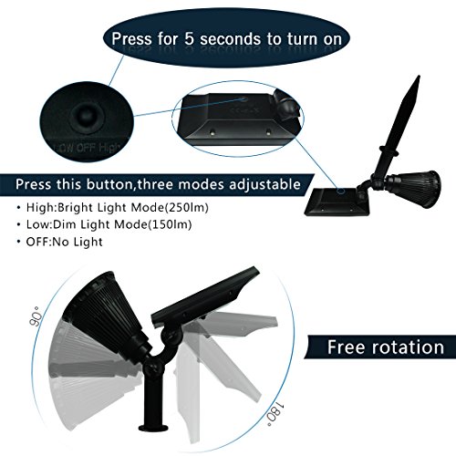 - 2 Brightness Working Modes : It can work on high light mode or dim light mode with different working time to meet your different requirement, built-in light control sensor allows it can AUTOMATICALLY turn on at night and turn off at sunrise