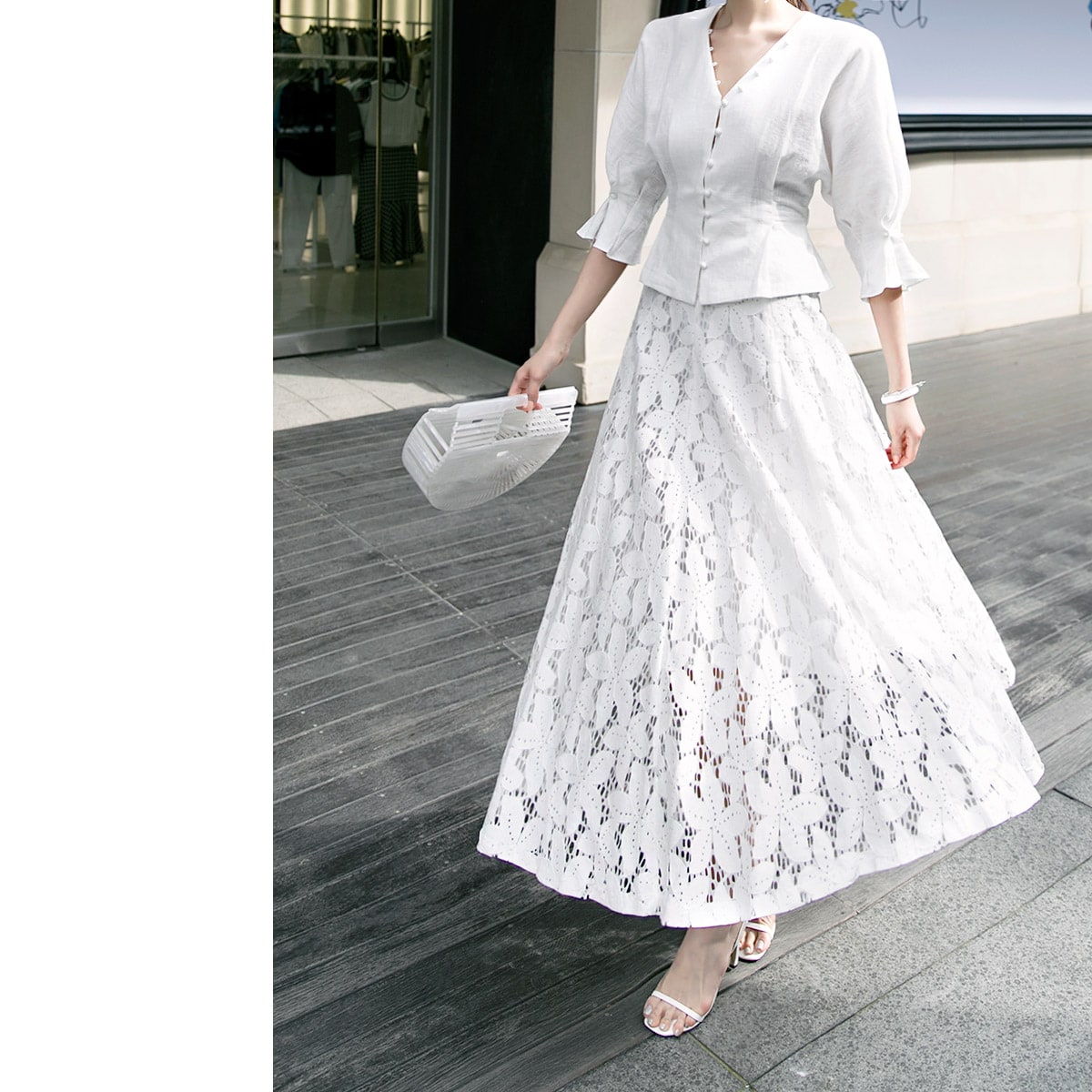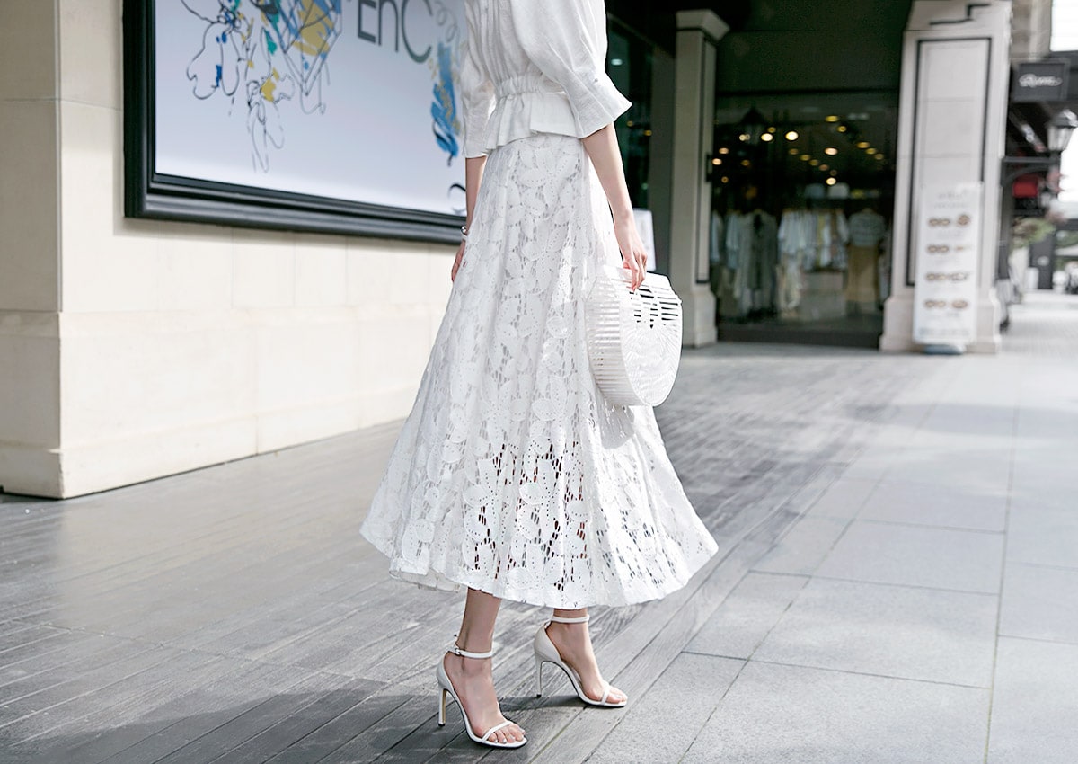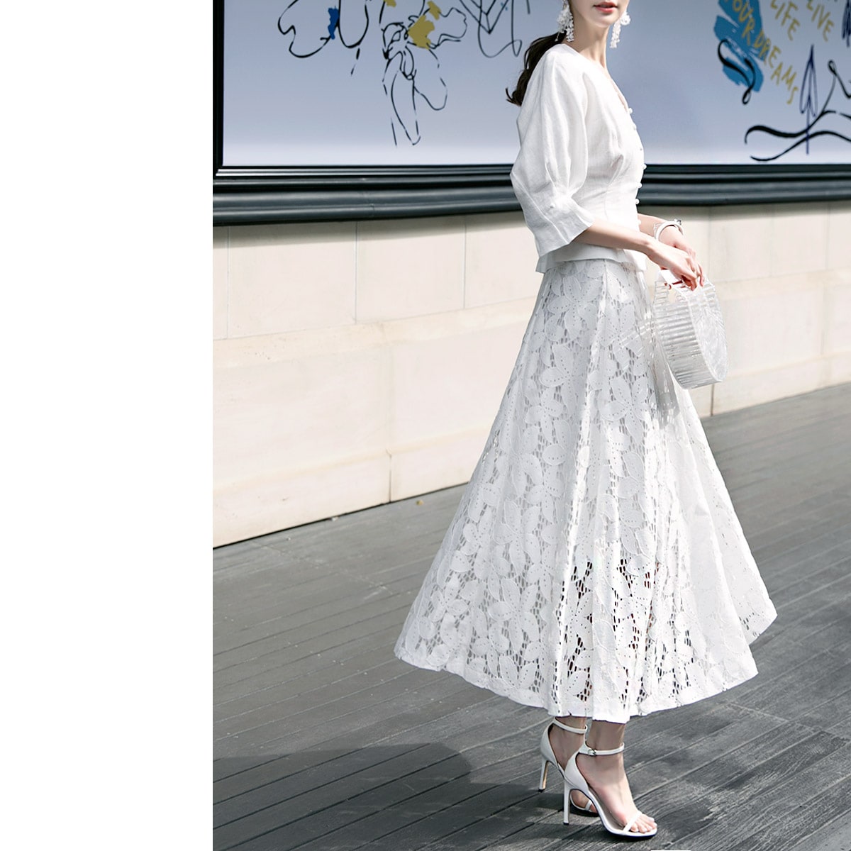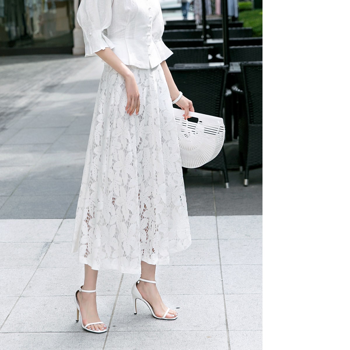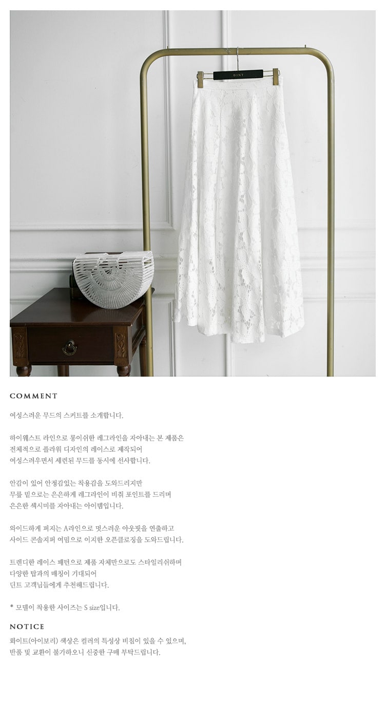 SK1720 모티브 레이스 플레어 롱 스커트 Ivory