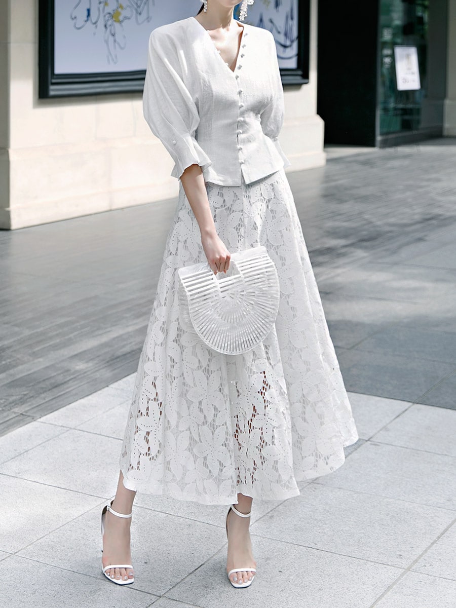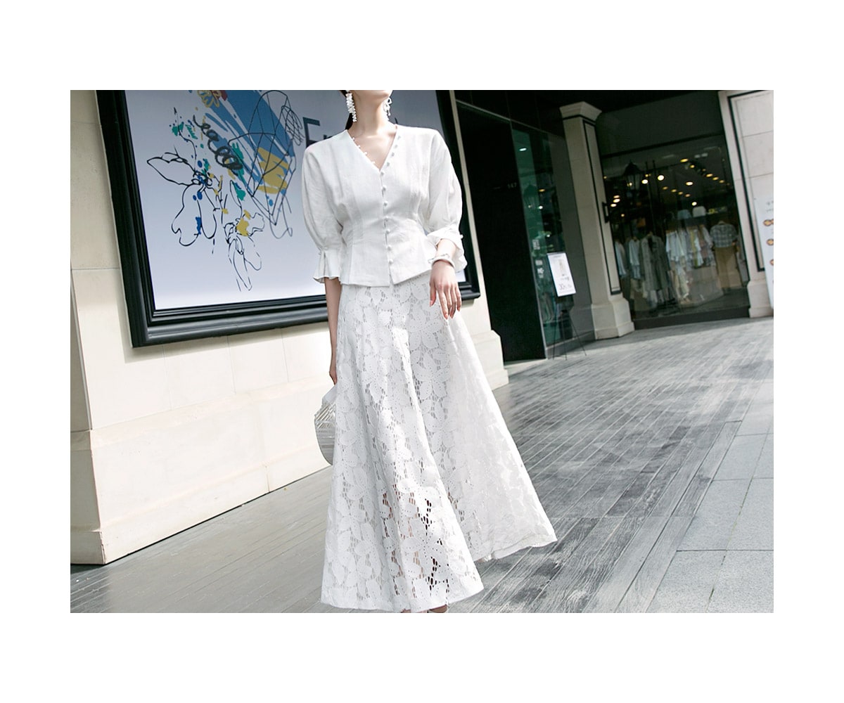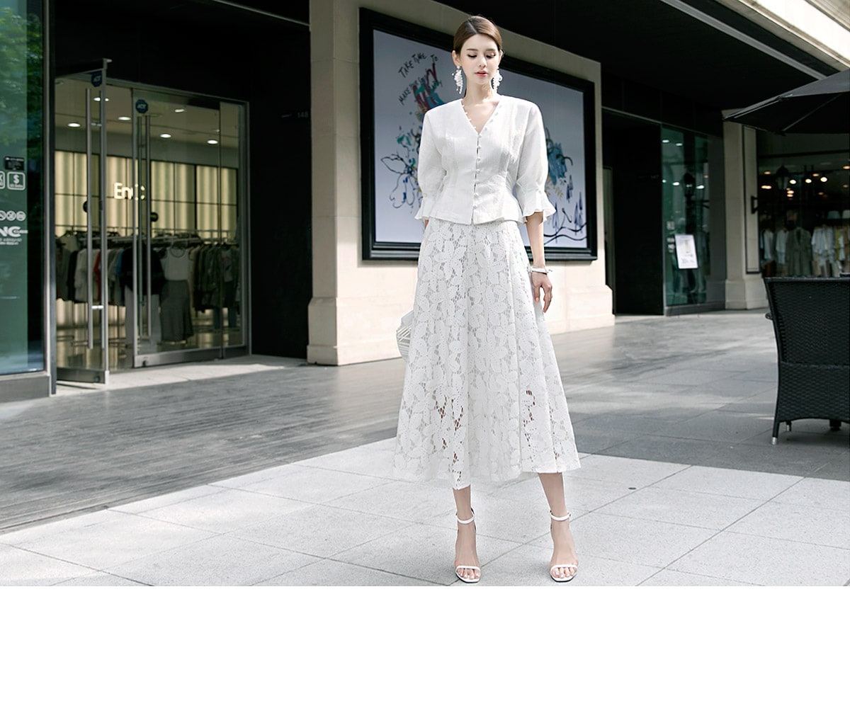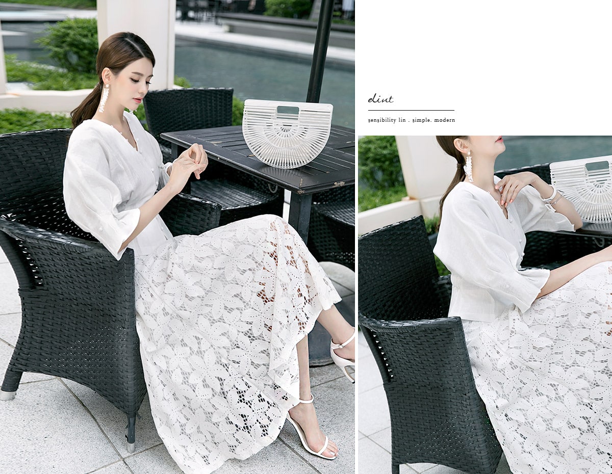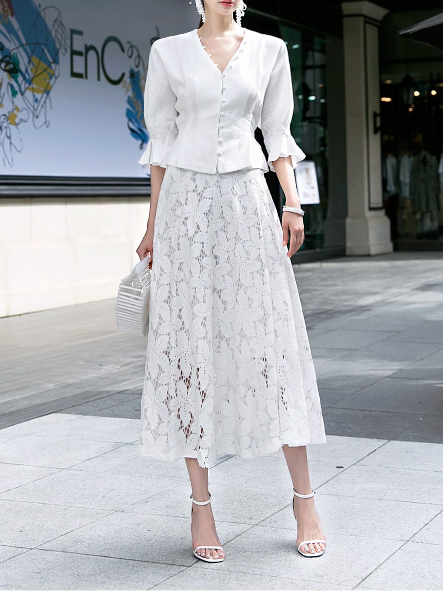 SK1720 모티브 레이스 플레어 롱 스커트 Ivory