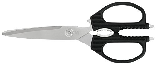Taskmaster Shears are multipurpose tools. In addition to handling a wide variety of cutting tasks, they include a nutcracker, jar opener, bone notch, lid lifter and screwdriver tips. For easy cleaning, the blades fully separate.