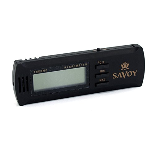 Studio : Ashton Publisher : Ashton Binding : Health and Beauty Product Description Read the temperature of your humidifier using this digital hygrometer from Savoy. With a black exterior, this rectangular hygrometer can be placed discreetly with your humidifier. You can mount it inside your humidor with the two velcro strips on the back. It features both Fahrenheit or Celsius settings for your temperature read out as well as options for your maximum and minimum humidity ranges. 4" L x 1-1/2" W 0