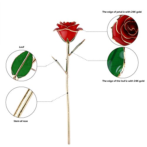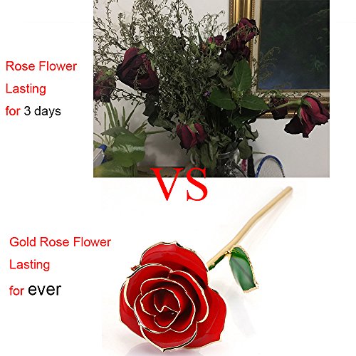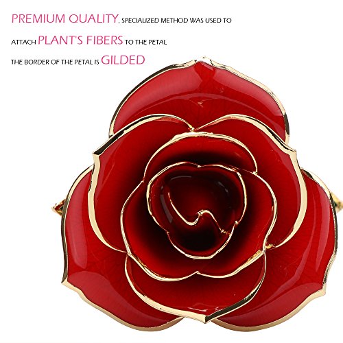 Real rose petals, stems and leaves hasbeen picked freshly, dried, preserved, and painted, finally plated with gold tolast forever.