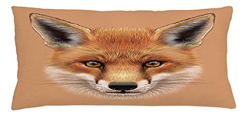 Fox Throw Pillow Cushion Cover by Ambesonne, Cute Fluffy Face of Forest Fox Young Baby Mammal P...