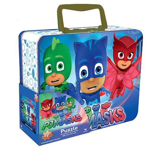 -. Title : PJ Masks Lunch Box Tin with Handle Themed Jigsaw Puzzle - 24-Piece