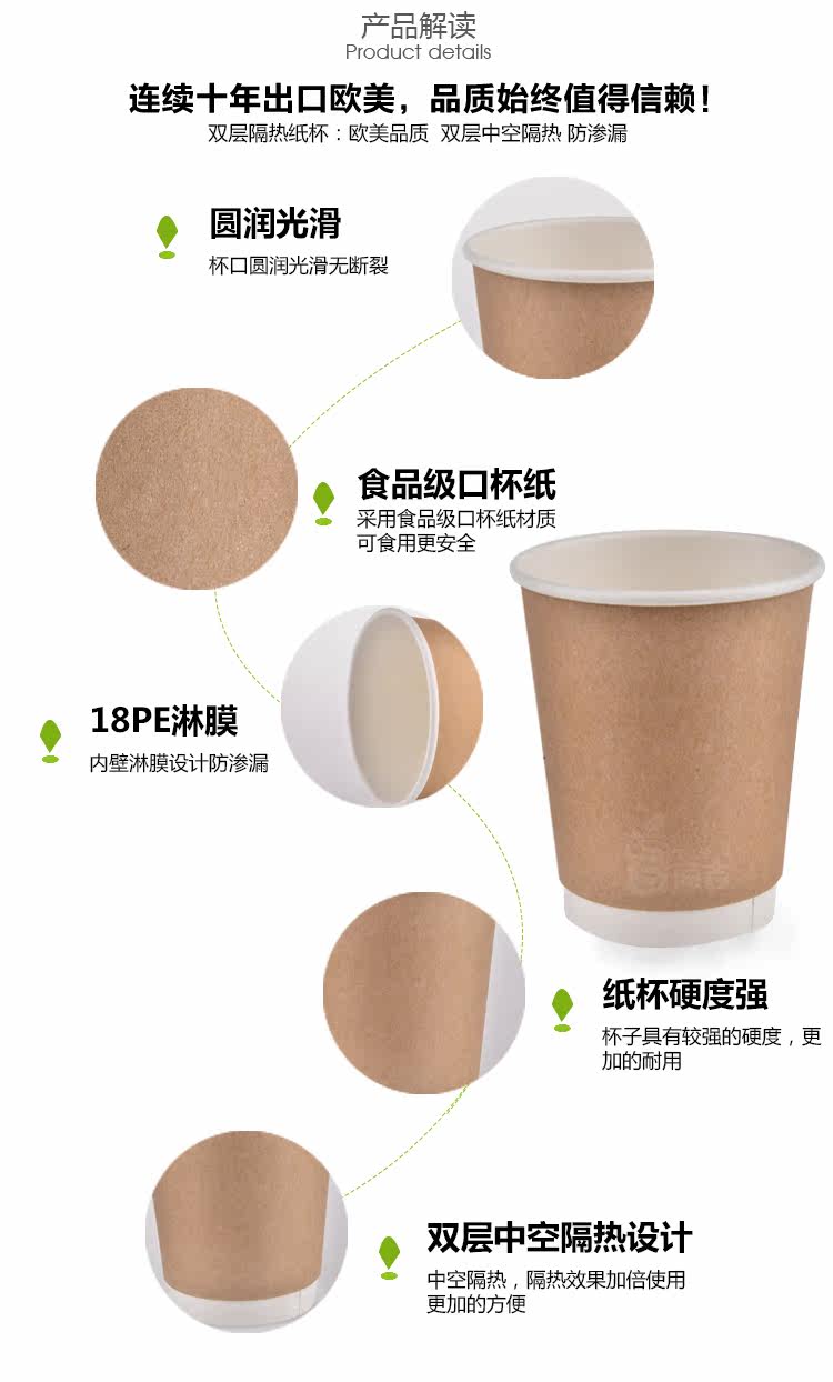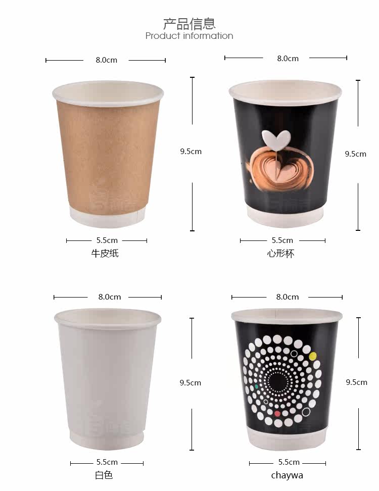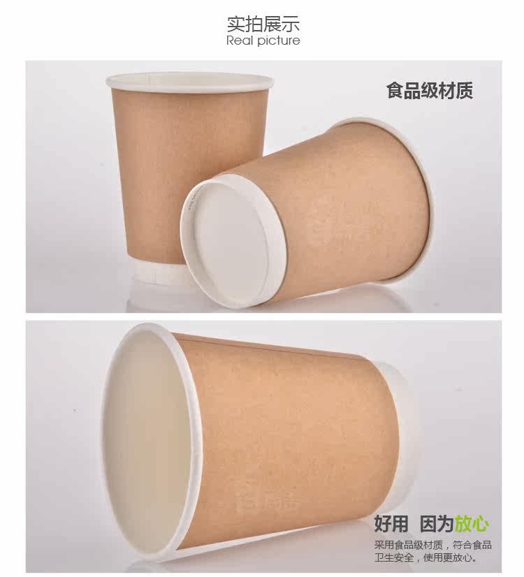 8oz双层杯一次性隔热牛皮纸热饮杯奶茶咖啡豆浆杯100只
