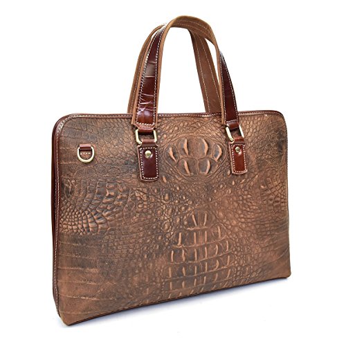 -. Title : ビジネスバッグ ブリーフケース メンズ 光沢 高級本革 男女兼用 クロコダイル柄 ショルダーバッグ レディース トートバッグ 2way レザーファション ハンドバッグ PC、A4書類、財布、折り畳み傘など収納 ブラウン