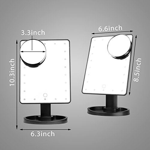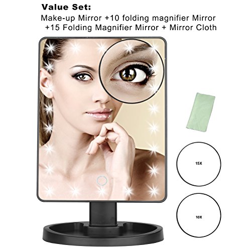 Topperone Vanity Makeup Mirror 22 LED Lighted with Touch Screen,Detachable 10X 15X Magnification Spot Mirror ,360°Adjustable Stand,Free Mirror Cloth ,...