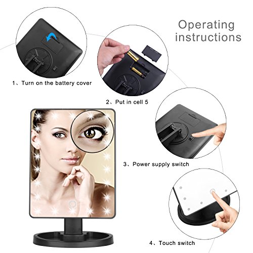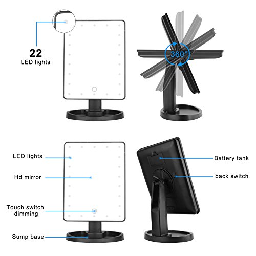 - And there are 22 lights, whether you want to put on your makeup during day or during the night, this Adjustable brightness led lighted mirror is the perfect choice;