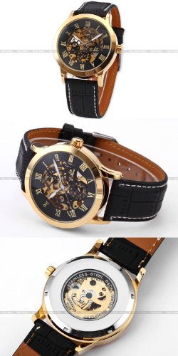-. Title : AMPM24 クラシック メンズ 自動機械式 ビジネス ウォッチ ブラック レザー ストラップ スケルトン 腕時計 PMW078