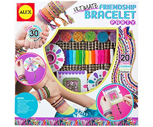 Studio : ART N CRAFT Publisher : ART N CRAFT Binding : Toy Product Description Say hello to friendship FUN! Birthday parties, slumber parties, after school get-togethers... the Ultimate Friendship Bracelet kit is cause for a party! Enjoying time with friends is easy, and making bracelets can be too! Three simple steps; Lift it, hook it, turn it. Bracelet looms are easy, effective, weaving fun. Create 30 bracelets - enough for you and all your friends. Wide, skinny, striped, checked, dots, chevron, rainbow designs, anything! Decorate your fashions with extra charms, beads and silver flowers. So pretty! Spend your time talking, not worrying about directions and complicated knots. One foam square loom and two round looms are simple to use with the included embroidery floss. 20 floss colors, solid and variegated, create endless designs. Celebrate friendship, be creative and have a BLAST! Ultimate Friendship Bracelet Party Friendship bracelet party kit Encourage self-expression, creativity Make 30 bracelets! Features 3 foam looms Easy and simple; lift, hook and turn Includes: 20 colors of embroidery floss (8.75 yards each), square loom, 2 circle looms, beads, 19 silver beads, charm, jump ring, elastic string, 2 beading needles Easy-to-follow instructions Great for birthday parties, slumber parties, after school get-togethers 0