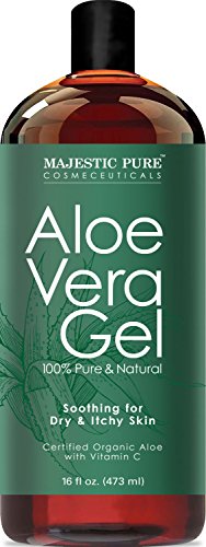 -. Feature : Majestic Pure Organic Aloe Vera Gel; made with certified organic aloe vera; 100% natural oil; cold pressed; no harmful chemicals; no added color, fragrance or alcohol; not tested on animals; vegan; grown and made in the USA / Help soothe and hydrate dry, rough, itchy or irritate skin on contact. Can be used to help with eczema, psoriasis, acne, scalp itch, sun burns, cuticles, insect bites, wind burn, razor burn and other rashes / SAFETY WARNING: For external use only. Rub a very small amount on the inside of your elbow area to test for any allergic reaction before use. Avoid contact with eyes, keep out of the reach of children. If pregnant, consult with your health care provider before use / Great for use as an aftershave, hair gel, or leave in conditioner for shinier, healthier hair / Purchase with complete peace of mind, we are confident we have developed the absolute best organic aloe vera gel in the market; If you are not completely satisfied with Majestic Pure Organic Aloe Vera Gel, we will refund your entire purchase