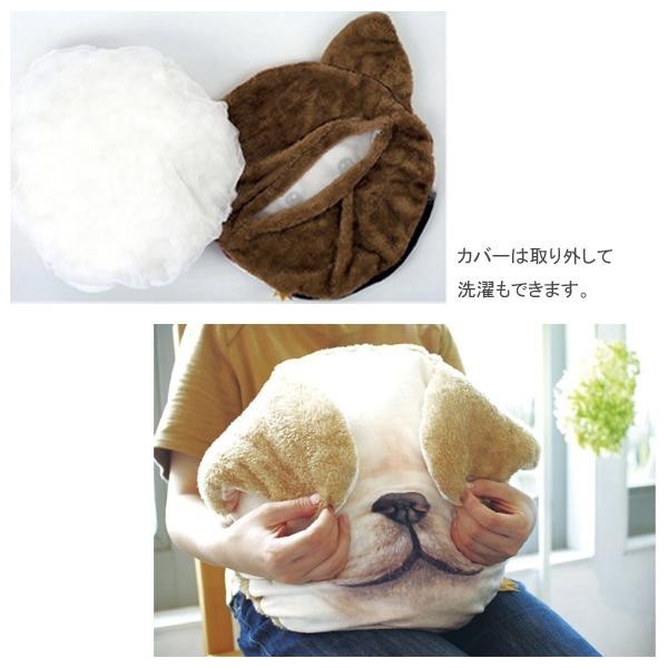 | 可愛いアニマルフェイスのシリーズ・いぬのクッションです。まるいシルエットなので、背中にあてたり枕代わりにしたりと使い方は自由自在。さらにカバーは外して洗濯することができ、非常に便利です。裏面は、それぞれの動物の毛並みをイメージしたふわふわのソフトボア生地を使用しているので、抱き心地も抜群です。 |