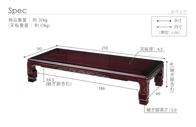 天板サイズ:幅210x奥行90cm・厚み45mm