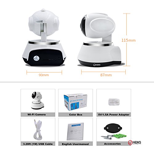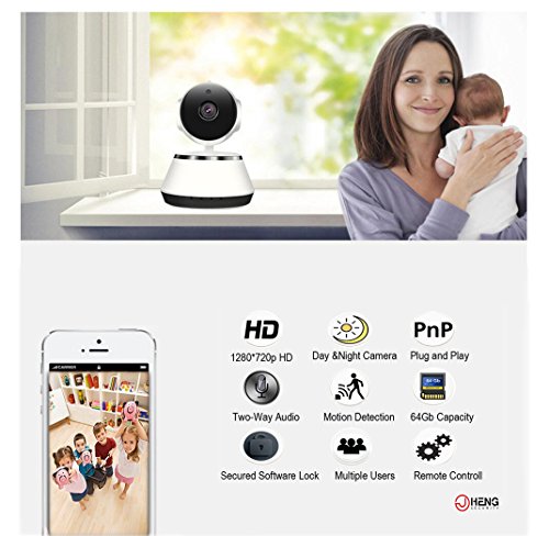 -. Feature : Plug and Play, Easy set up Wi-Fi connection. Support 2.4G WIFI, it can't support 5G. Supports iOS and Android only. Prepare the Quick Start Guide for customer (paper version and digital version). With secured software lock and support multiple users / 1280*720P Stunning High Definition, 80° wide-angle Mega Pixel lens, 6-Led infrared light for 10ft-15ft night version, the camera will auto switch to night vision when it's dark. If need a clearer night vision approx. 30ft, can match our 4-Led High Power IR illuminator ASIN: B01D73XM24. Find matching discount in below / Pan Tilt & Remote: You could remotely control (at any with Wi-Fi) the camera via using the App to view your surveillance place with a 355° horizontal & 110° vertical rotation create a complete 360° surveillance coverage / Motion Detection Alarm, it supports phone push alarm, msg alarm and whistle alarm; Two-way Audio, you could real time 'talk' with camera end by pressing the mic of App supports real-time monitoring, video recording and playback via the Micro-SD card (Max 64GB, 30 days; SD card not included) / It is your ideal choice for child care/baby monitor/nanny care, Elderly care, patient care, home security, office security, pet watching...convenient tech support: support@jcheng-security.com